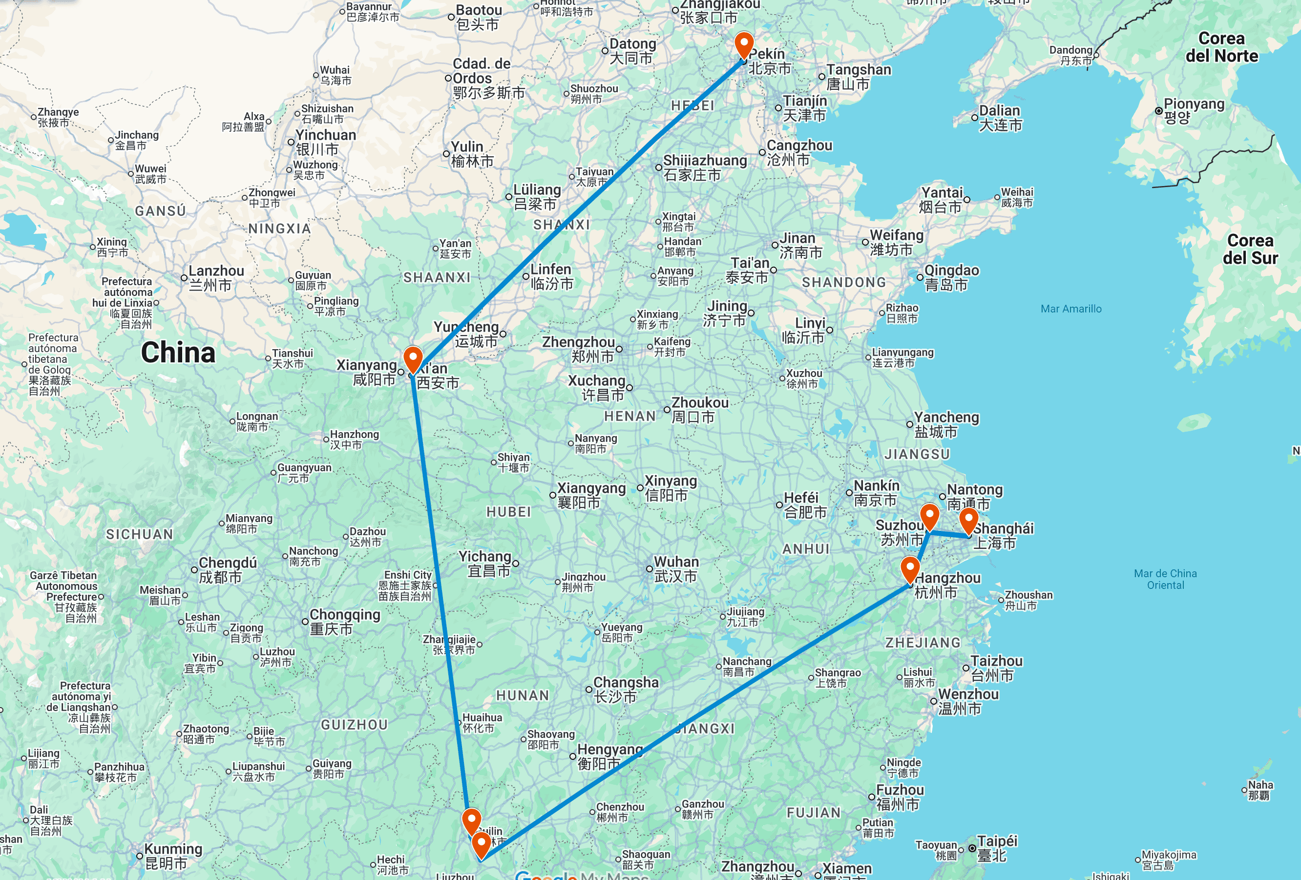 Sumérgete en la esencia imperial de Pekín recorriendo la Gran Muralla y los secretos de la majestuosa Ciudad Prohibida. Viaja en tren de alta velocidad hacia Xi’an para asombrarte ante el eterno ejército de los Guerreros de Terracota. Descubre Guilin y sus típicos paisajes formados por lagos, ríos, llanuras y suaves colinas. Haz un crucero por el río Li Jian, una experiencia esencial en China que ofrece paisajes de montañas kársticas, arrozales y búfalos de agua. Sorpréndete con Hangzhou, la capital de la provincia de Zhejiang, célebre por ser una de las ciudades más hermosas de China, descrita históricamente como un “Paraíso en la Tierra”. Disfruta con Suzhou, una de las ciudades históricas más fascinantes del país, famosa por sus jardines clásicos y su red de canales que le han valido el sobrenombre de la “Venecia de Oriente”. Y para acabar nuestro viaje, la extraordinaria Shanghai, una ciudad que combina una historia milenaria como antigua capital de la dinastía Song con un presente como centro tecnológico global.